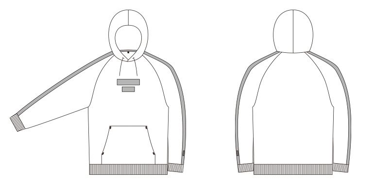 | 仕様 | ロゴ入りラインテープ、絞りスピンドル、ロゴプリント、カンガルーポケット、反射ネーム、ニットラインテープ袖口リブ、裾リブ |