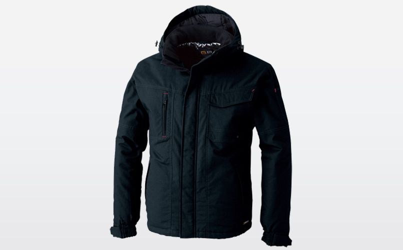 仕様 | タフ素材/撥水/背中アルミプリント/フード絞り/衿リブ/ファスナー隠し/裾絞り/ヘルメット着用対応フード/着脱式フード/左胸ペン差し/左袖ペン差し/隠し面ファスナー/左内ポケット/逆玉縁ポケット/袖アジャストテープ/金属ファスナー/フード:樹脂ファスナー |