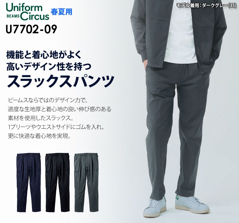 桑和 U770209 [春夏用]Uniform Circus BEAMS スラックス(ワンタック、脇ゴム)[男性用]