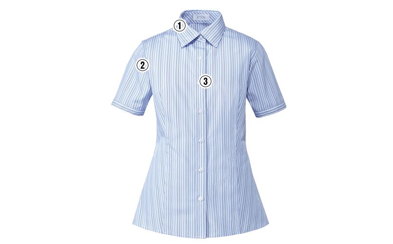 [廃番]Enjoy ESB599 [春夏用]デキる女の表情を生むシャープなストライプ 半袖シャツブラウス