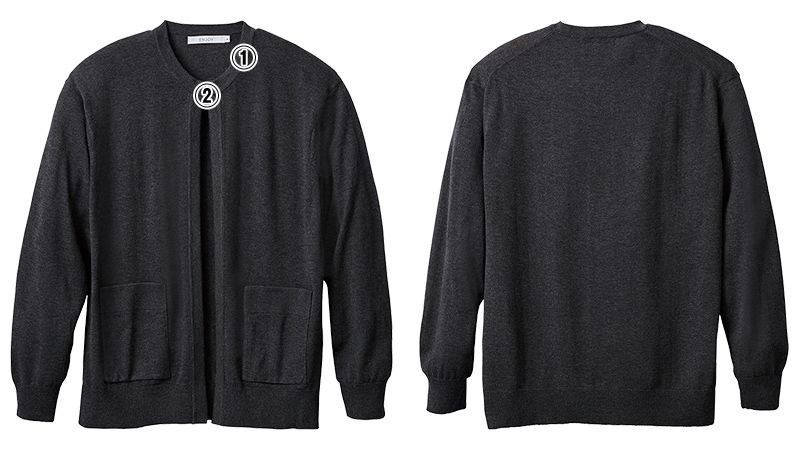 前立てボタンなしの首元のホック仕様で着脱がカンタン!いろいろなインナーに合わせやすい一着です。