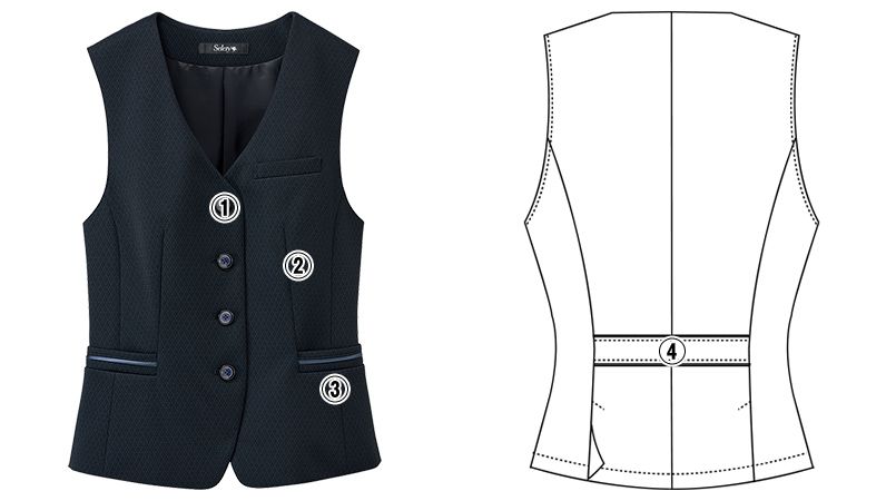 後ろベルトデザイン。配色を施した後ろベルトがアクセント。ベンツ仕立てでヒップまわりもスッキリ。