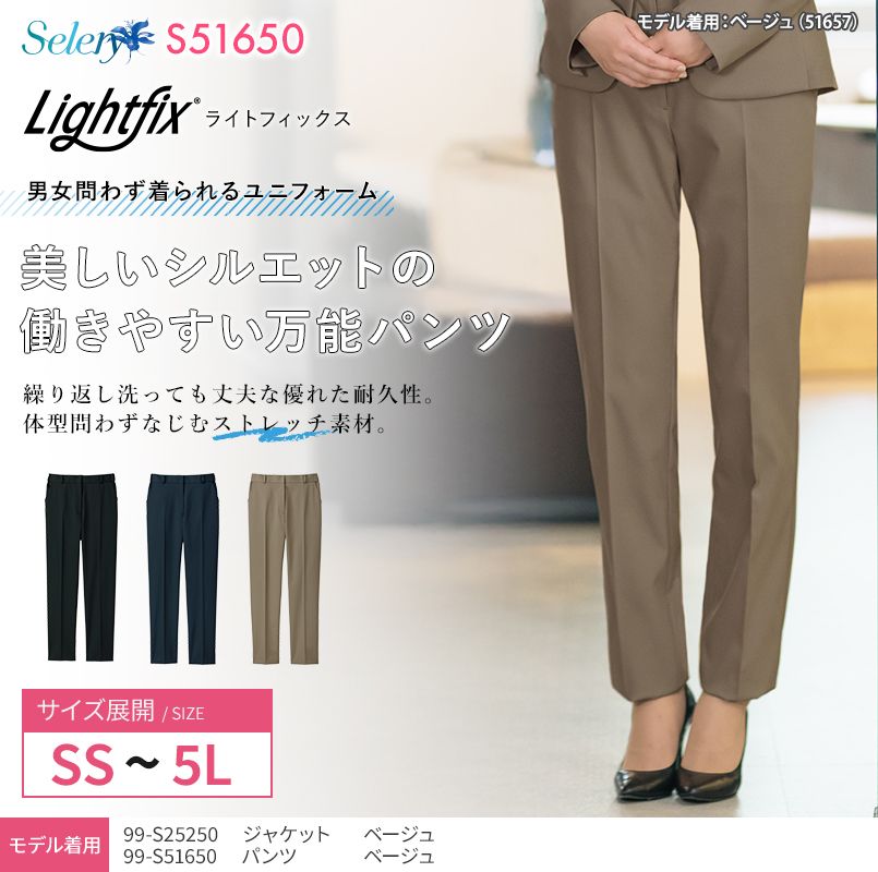 Selery S-51650 51651 51657 [通年]パンツ(テーパードタイプ/裾上げ済み)[ストレッチ/制電/ノータック/脇ゴム]