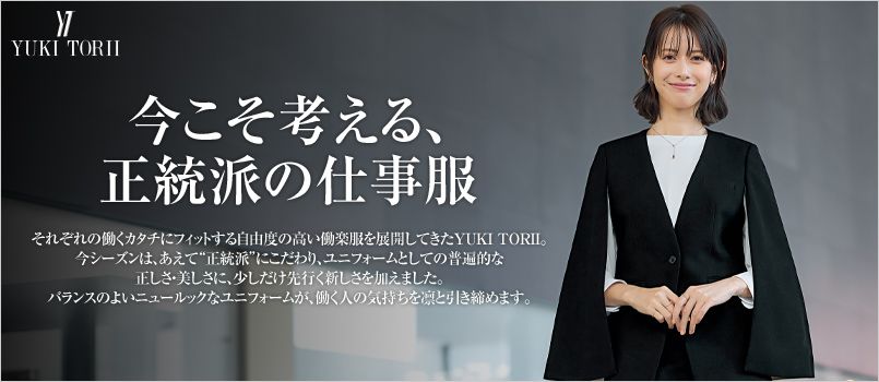 ユキトリイは、世界でも有名な日本のデザイナーの一人であり、制服業界でもコラボして活躍をしています。 ユキトリイの事務服は、一流デザイナーならではのデザイン性の高さがありつつ、女性らしい事務服を多く展開しています。さらに、見た目だけではない機能性も多く取り入れられていることも、人気の高さの秘訣となっています。 展開している事務服の種類では、ジャケットやベスト、ブラウスやワンピース、スカートやパンツなど豊富なアイテムがあり、トップスとボトムスでセットでデザインされているものもありますが、好みに合わせて別の物と組み合わせることもできます。さらに、スカーフやベルトなどの小物類もあるので、組合せは数えきれないほどあることから他の企業の制服と被ってしまったというトラブルもありません。 オールシーズン対応から、夏用であれば汗をかいた時にも安心な防臭加工が施されていたり、動きやすさのためのストレッチ素材など快適に着こなせるような工夫も各所に施されています。毎日清潔に着続けることができるように、自宅で洗濯ができるものやシワがよりにくい防シワ加工があったりと、忙しく働く女性のためにも役立つ事務服が揃っています。